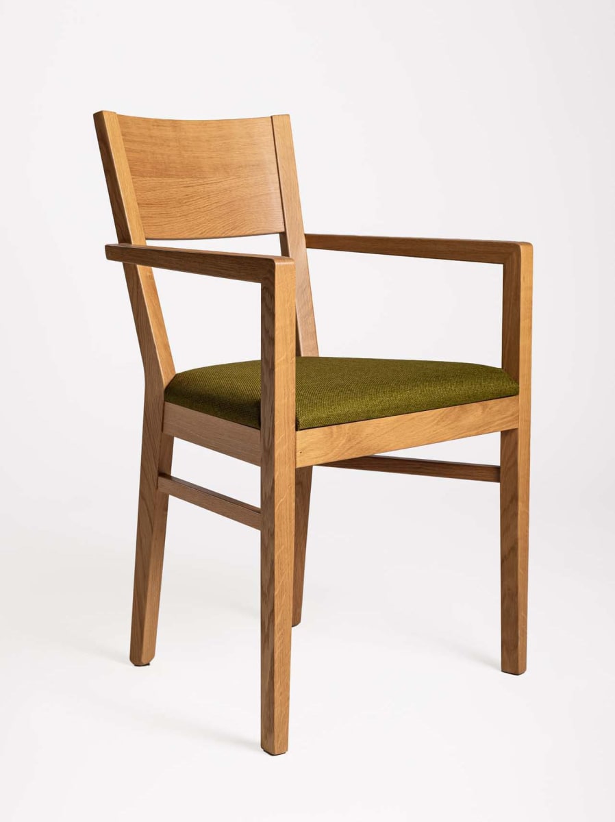 Gefertigt aus edlem Ahorn, Buche oder Eiche, bringt jedes Stück die individuelle Maserung und die Wärme der Natur direkt an Ihren Esstisch. Die sanft geneigte Rückenlehne ist so geformt, dass sie den Rücken sicher stützt und gleichzeitig eine einladende Offenheit ausstrahlt. Das Zusammenspiel aus massivem Holz und der weichen, präzise gearbeiteten Polsterung schafft eine harmonische Balance. Meiner Sitzhöhe von 48 cm bietet das Modell ergonomischen Komfort.
