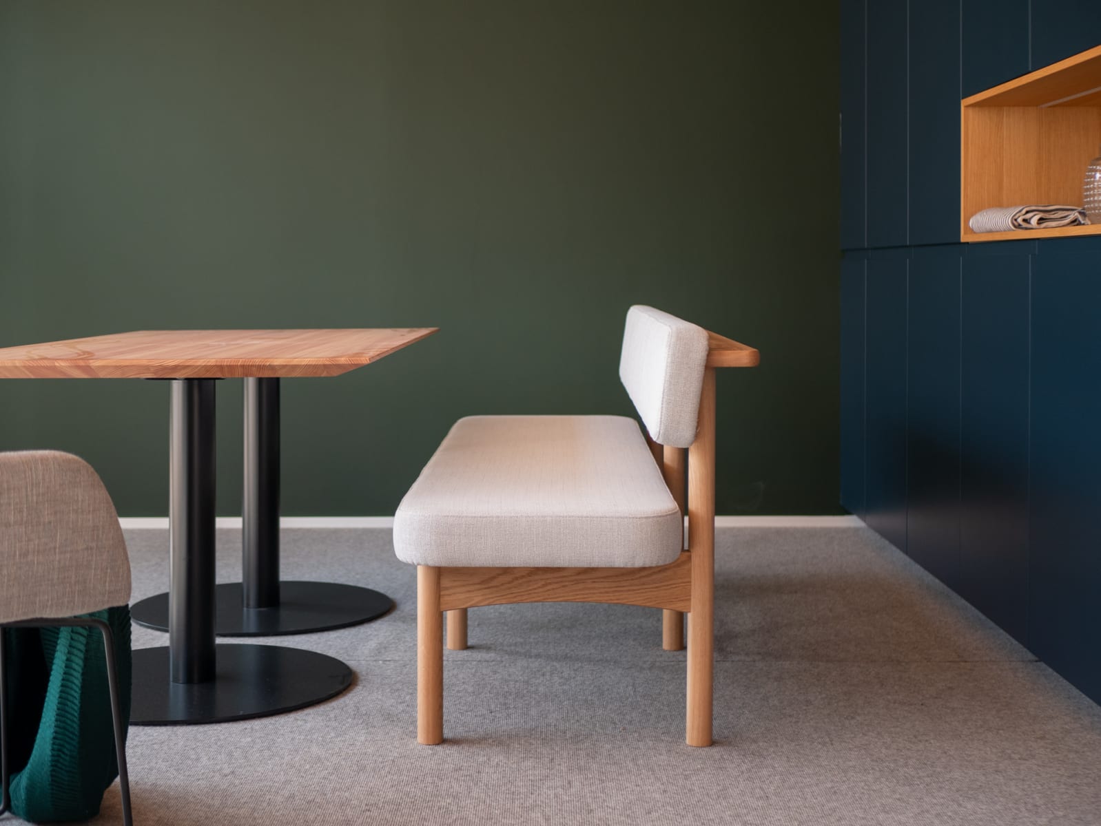 Karge Landschaften, knorrige Menschen - Reduktion auf das Wesentliche: Das Praktische und Langlebige, das Schöne und Gemütliche. Östliche Länge 12,8 Grad; 1.763,47 km südlich des skandinavischen Designs. Der Eyecatcher des Bankmodells Johan ist die formschöne Handauflage, durch die ein schöner Wandanschluss entsteht und die zudem sehr angenehm für den Benutzer ist.