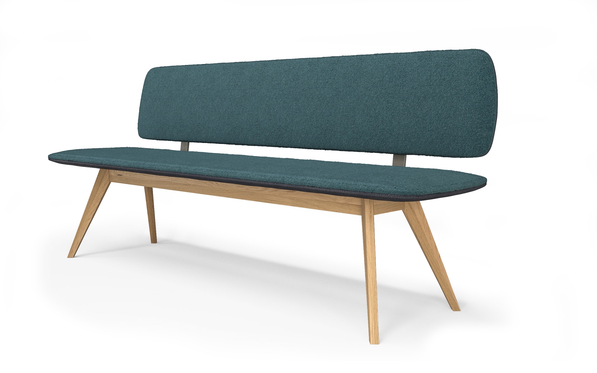 Skandinavisches Design trifft auf Tiroler Handwerkskunst. Verspielte Formen treffen auf handwerkliches Know-how und ehrlichen Materialmix. Durch die bombierte und dadurch sehr zart wirkende Polsterung kommt Veith sehr leichtfüßig daher, verliert aber durch seine ausgestellten Beine nie seine Tiroler Standfestigkeit.