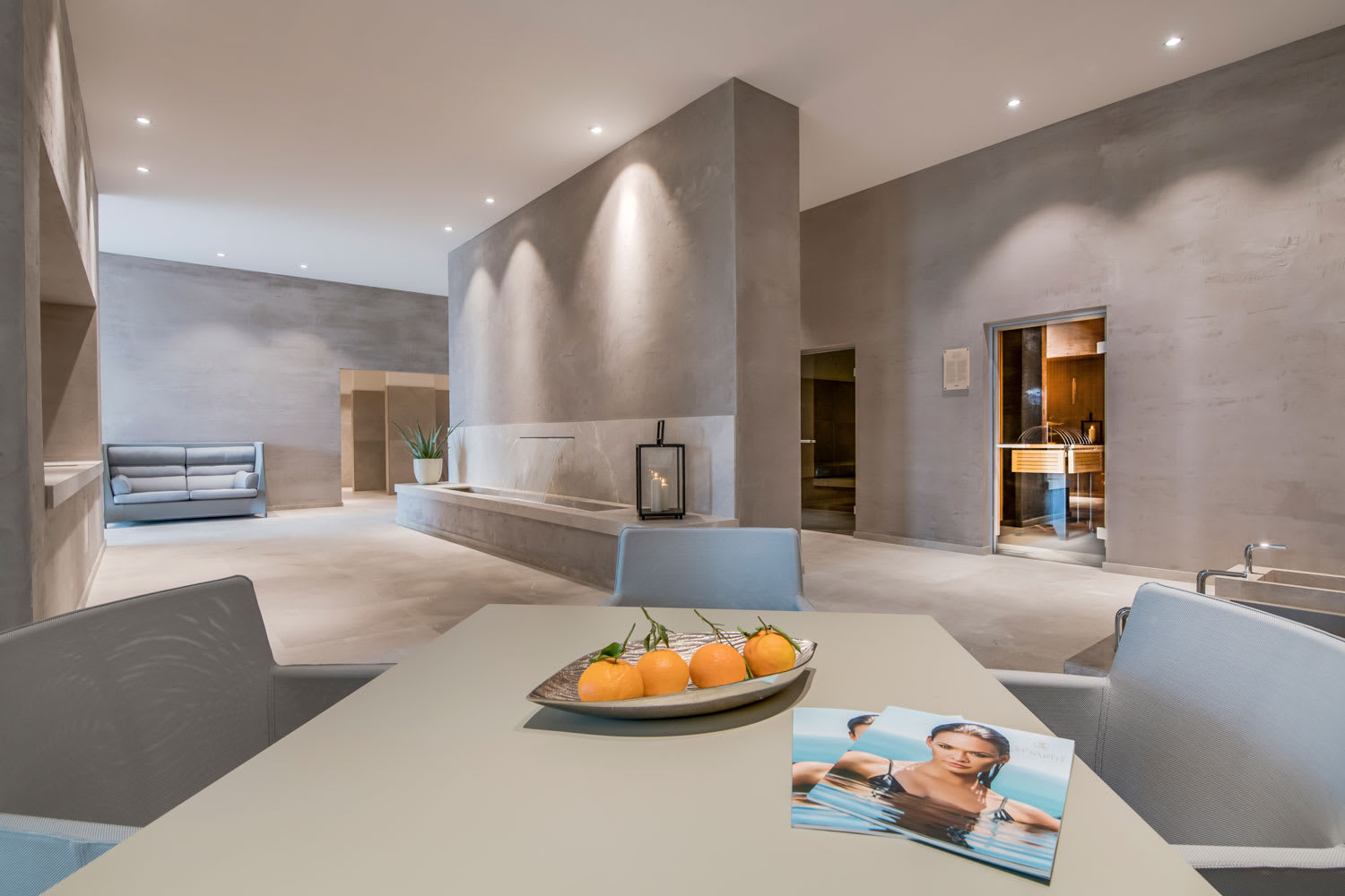 Der Wellnessbereich: Der Wellnessbereich verführt mit ruhigen Naturtönen, feinen Materialien und einer Atmosphäre, die Körper und Geist sanft umhüllt.