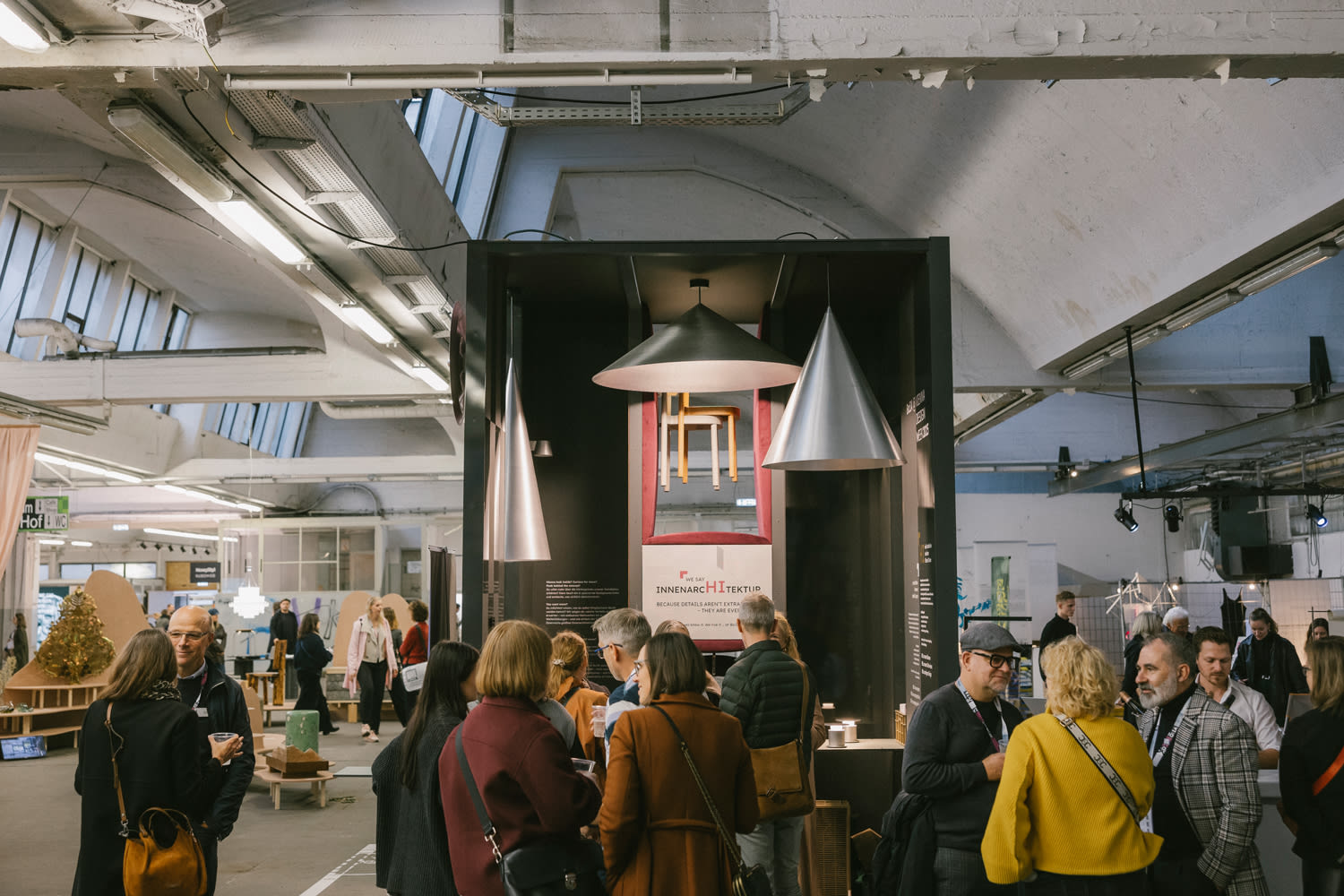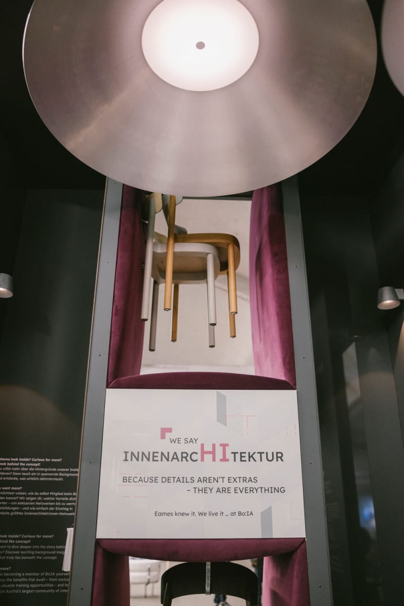 In der rauen Atmosphäre einer alten Industriehalle im 4. Wiener Gemeindebezirk zeigen die Innenarchitekt:innen eine eindrucksvolle Installation unter dem Motto „We say InnenarchHItektur“. Das feine Tapezierhandwerk kommt von Forcher und erzeugt dazu einen besonderen Kontrast. Der Osttiroler Tischlereibetrieb ist seit Jahrzehnten für handwerkliche Perfektion und zeitgemäßes Möbeldesign bekannt und setzt mit seiner Tapezier- und Polsterarbeit Akzente für Privathäuser und Hotels auf der ganzen Welt. Dieses Mal überzeugte ihr Beitrag mit einer Balance aus Funktion, Materialität und Präzision. Vor allem die Umsetzung des ikonischen „H“ beim Messestand sorgte für Aufsehen.